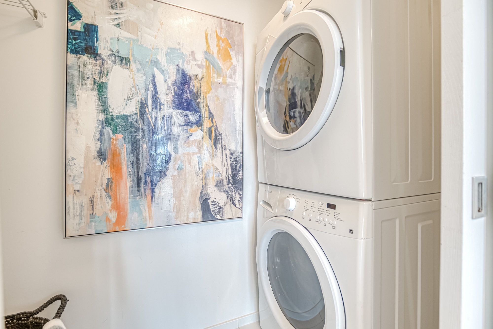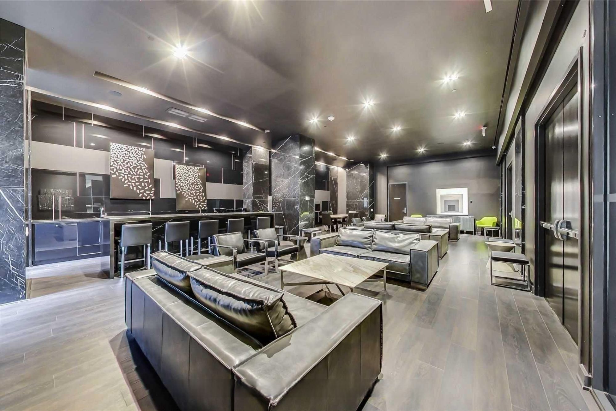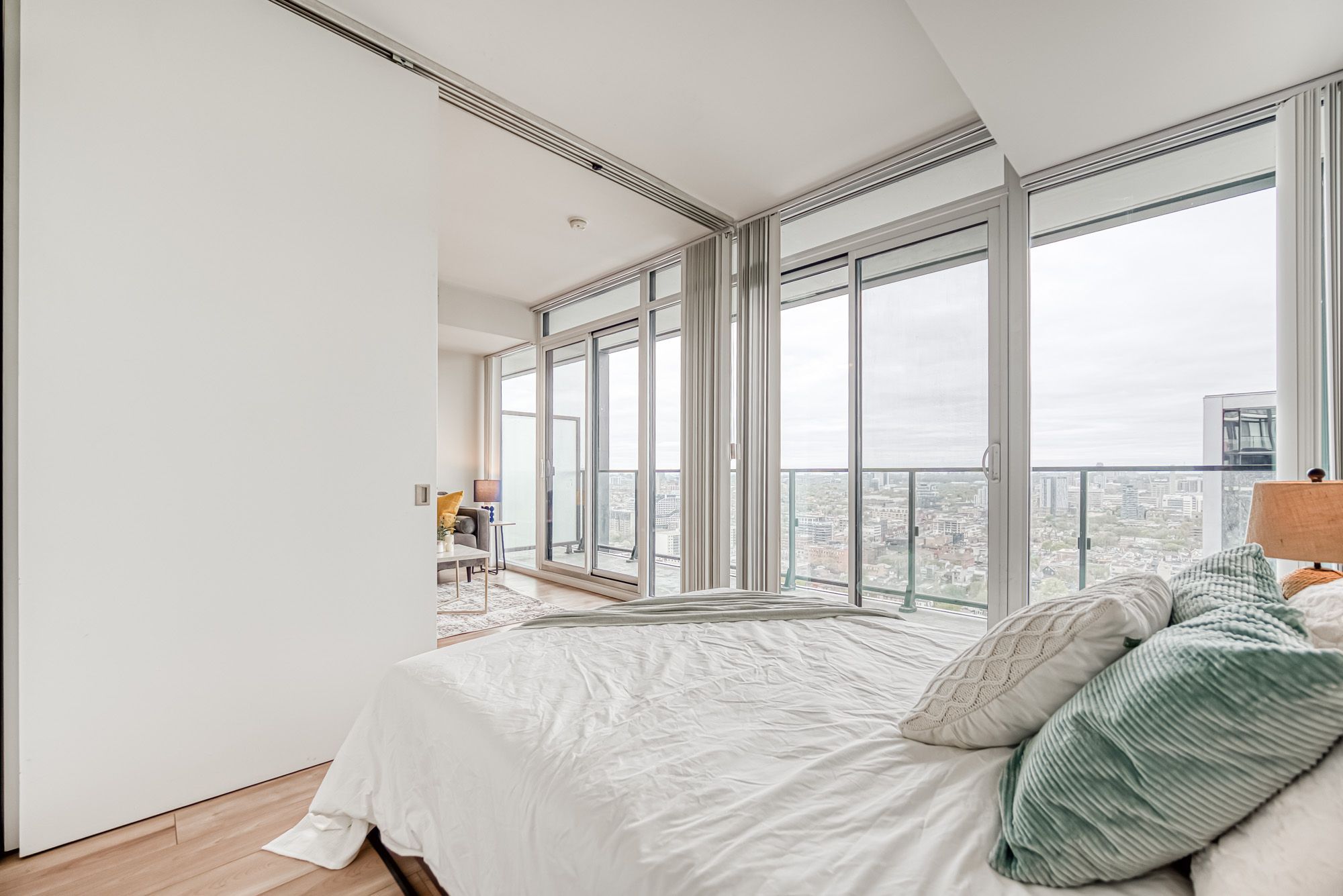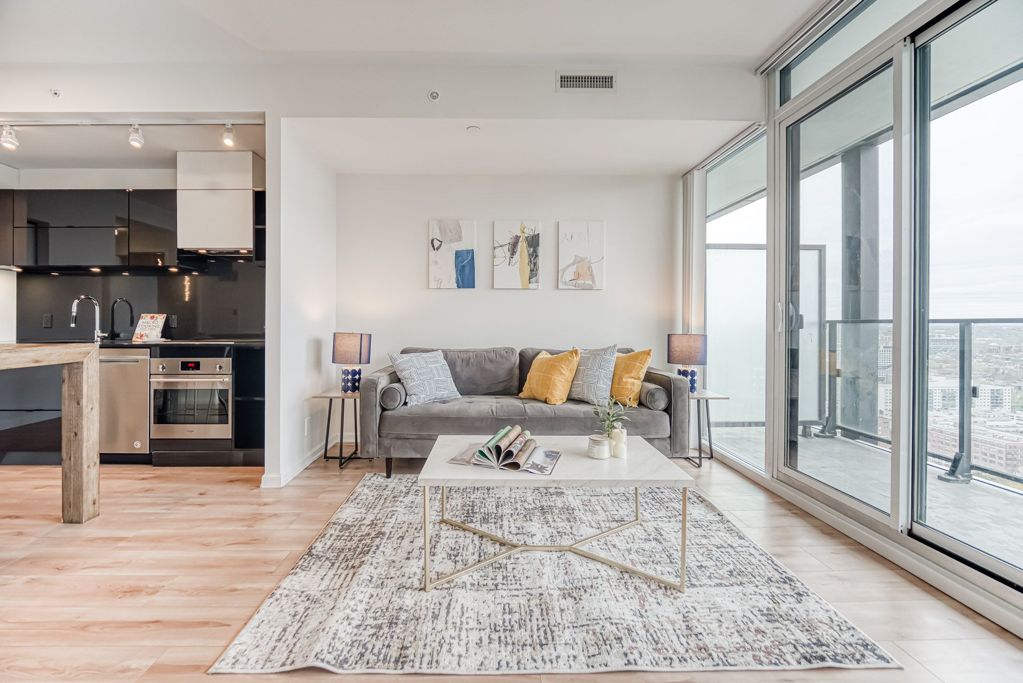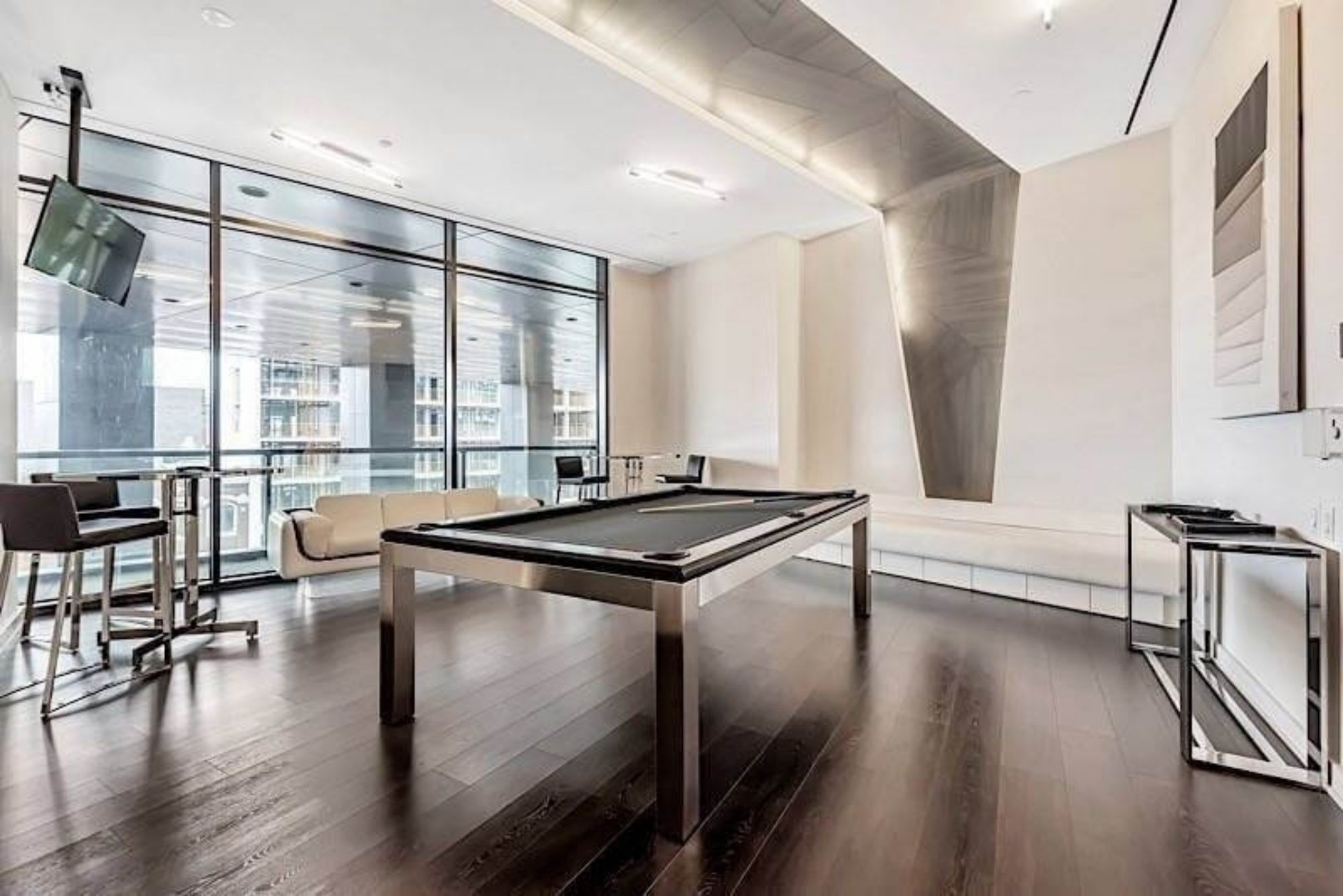 Prime Location, Luxurious Tableau Condo in Downtown Toronto! Rare to find 1 + LARGE Den that can be used for a 2nd Bedroom! High 9-foot ceilings throughout most of the unit (except for small entrance section with ductwork). Functional layout of 590 Sq Ft + Large 105 Sq Ft Balcony on the 28th floor + locker. Freshly painted wall (2025) and New Laminate Floor (2024). Ensuite walk-in Laundry Room offers extra storage room with coat rack and W/D. Bright unit with Walls Of Windows and expansive, unobstructed outlook. Features an Open-Concept Design Modern Kitchen equipped with a Built-In Fridge, Stove, Oven, And Dishwasher. Well-managed building with low maintenance fee. Look forward to an enhanced lifestyle with resort-like amenities such as Onsite Gym & Yoga studio, Sauna Room, Party Lounge & Pool Table, Media & Guest Suites, Visitor Parking, and Outdoor Deck with BBQ Grills. LOCATION: Perfectly situated in Downtown Toronto's core. Close proximity to PATH, Financial/Entertainment District, Theatres (TIFF), University Health Network, Northeastern University, U Of T, TMU, George Brown, OCAD, And TTC Access.
