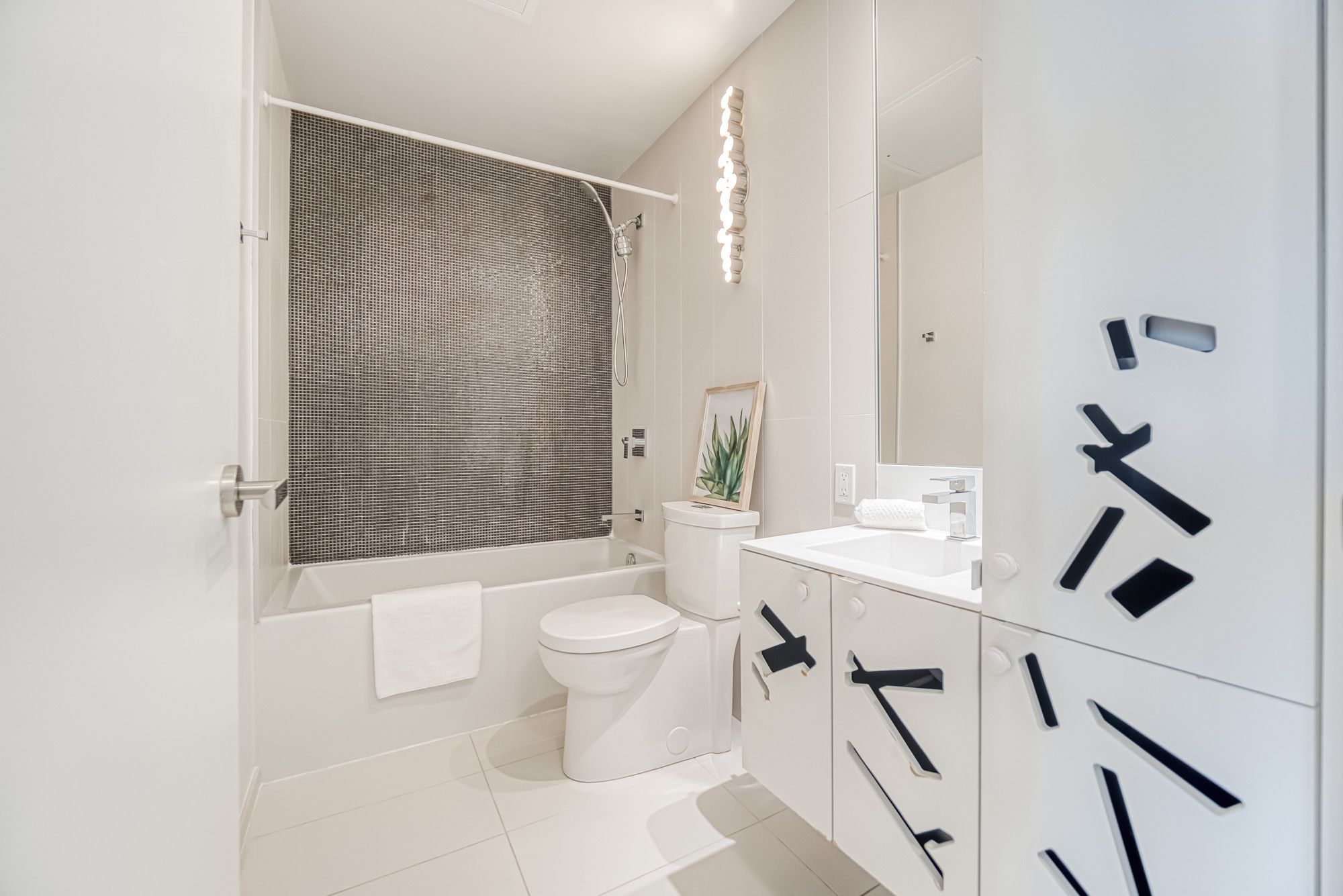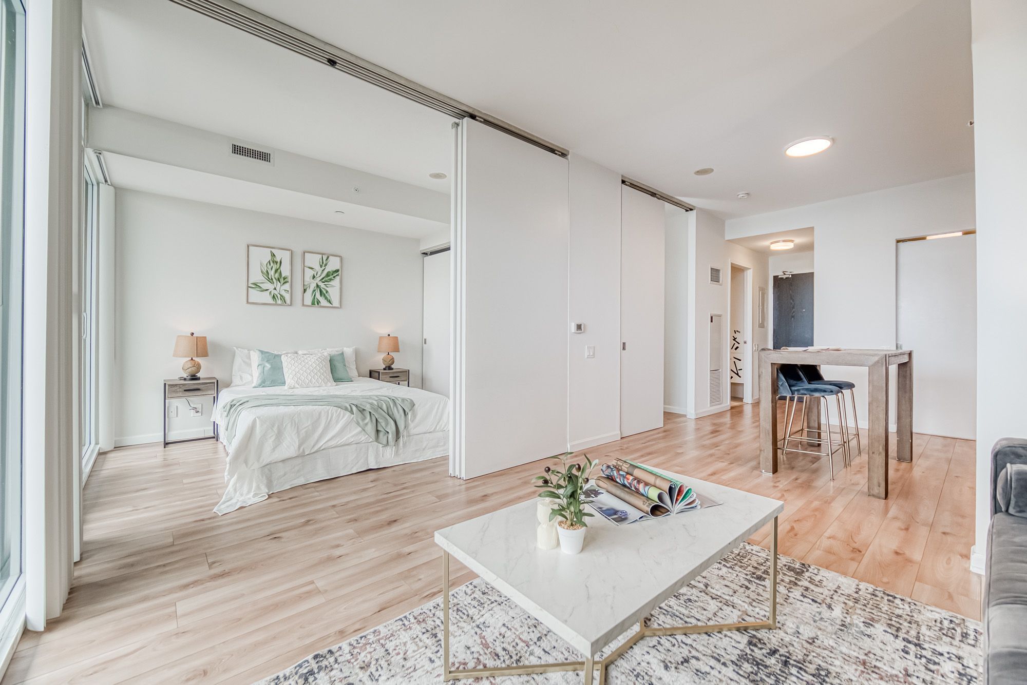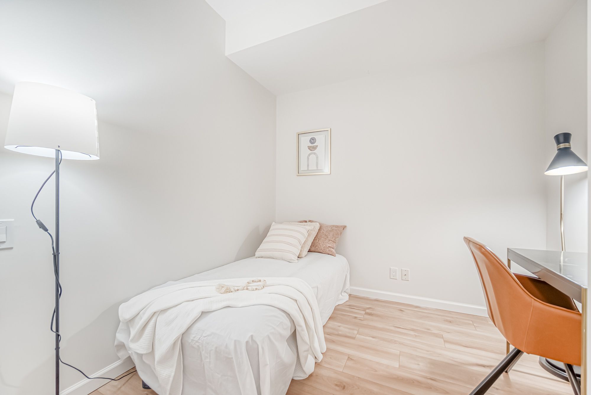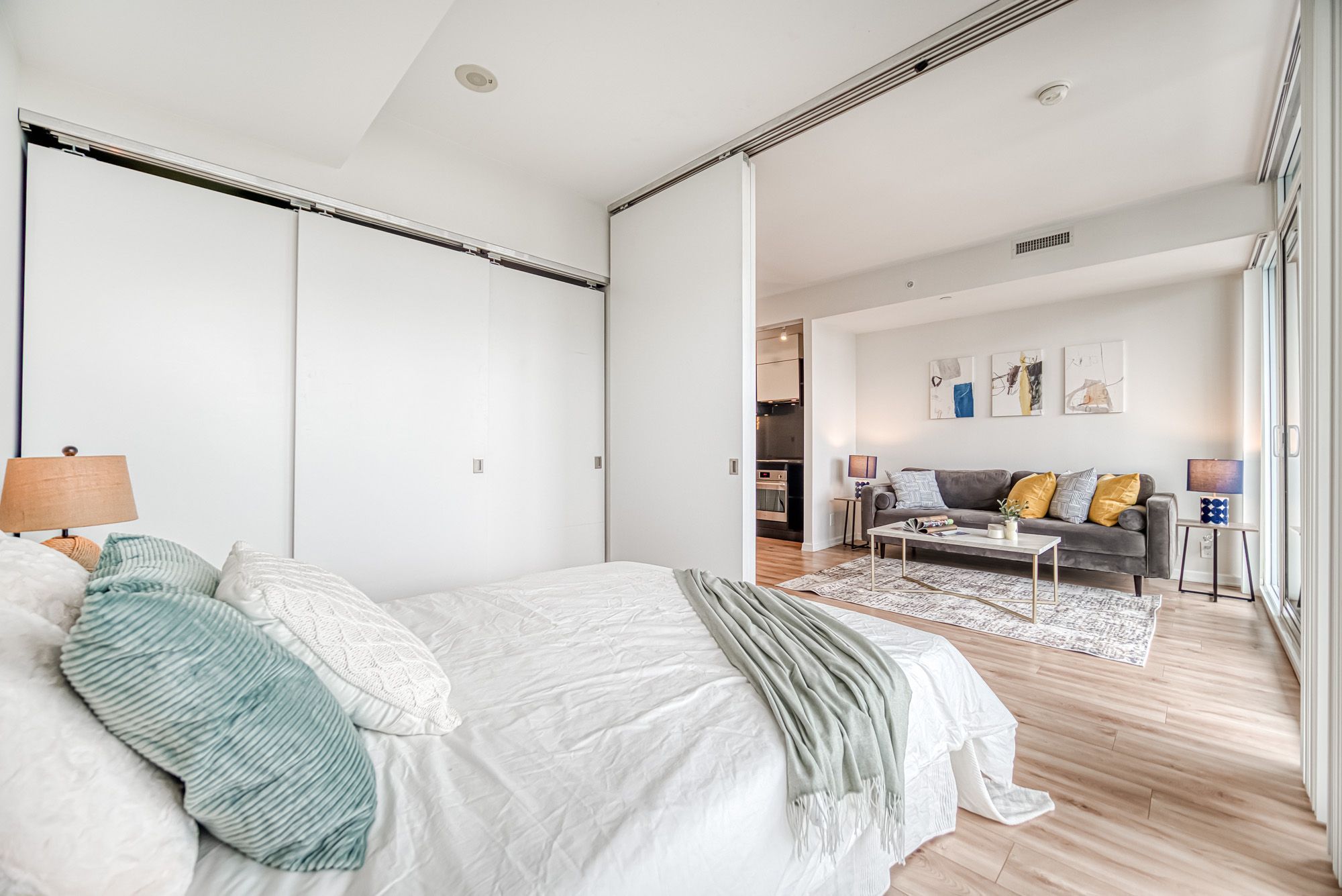 Prime Location, Luxurious Tableau Condo in Downtown Toronto! Rare to find 1 + LARGE Den that can be used for a 2nd Bedroom! High 9-foot ceilings throughout most of the unit (except for small entrance section with ductwork). Functional layout of 590 Sq Ft + Large 105 Sq Ft Balcony on the 28th floor + locker. Freshly painted wall (2025) and New Laminate Floor (2024). Ensuite walk-in Laundry Room offers extra storage room with coat rack and W/D. Bright unit with Walls Of Windows and expansive, unobstructed outlook. Features an Open-Concept Design Modern Kitchen equipped with a Built-In Fridge, Stove, Oven, And Dishwasher. Well-managed building with low maintenance fee. Look forward to an enhanced lifestyle with resort-like amenities such as Onsite Gym & Yoga studio, Sauna Room, Party Lounge & Pool Table, Media & Guest Suites, Visitor Parking, and Outdoor Deck with BBQ Grills. LOCATION: Perfectly situated in Downtown Toronto's core. Close proximity to PATH, Financial/Entertainment District, Theatres (TIFF), University Health Network, Northeastern University, U Of T, TMU, George Brown, OCAD, And TTC Access.